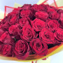 На фото букет из 51 бордовой розы. В составе: роза 51 шт, фоамиран 3 шт, атласная лента 1 шт, . Все цветы свежие и ароматные, букет красиво оформлен и отлично подходит для подарка. Доступна доставка цветов или самовывоз.